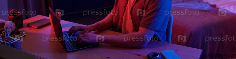 Использование ноутбука во время работы человек поздно ночью