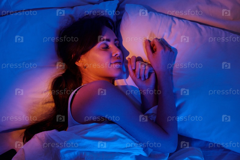 Женщина, которая спит в постели ночью