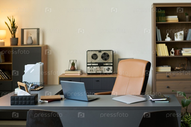 Пустой офис психолога Интерьер с настольным ноутбуком и терапевтическими материалами