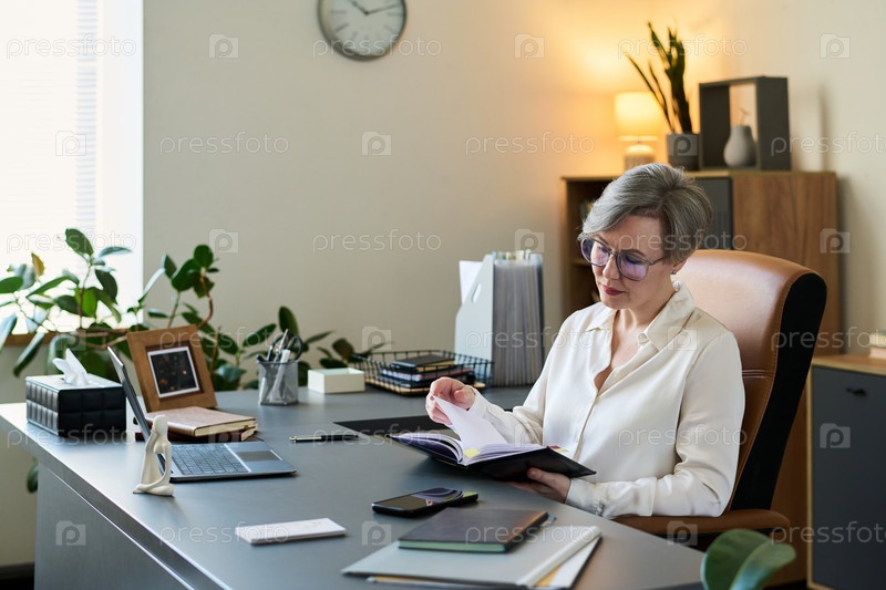 Психолог-женщина просматривает документы за столом