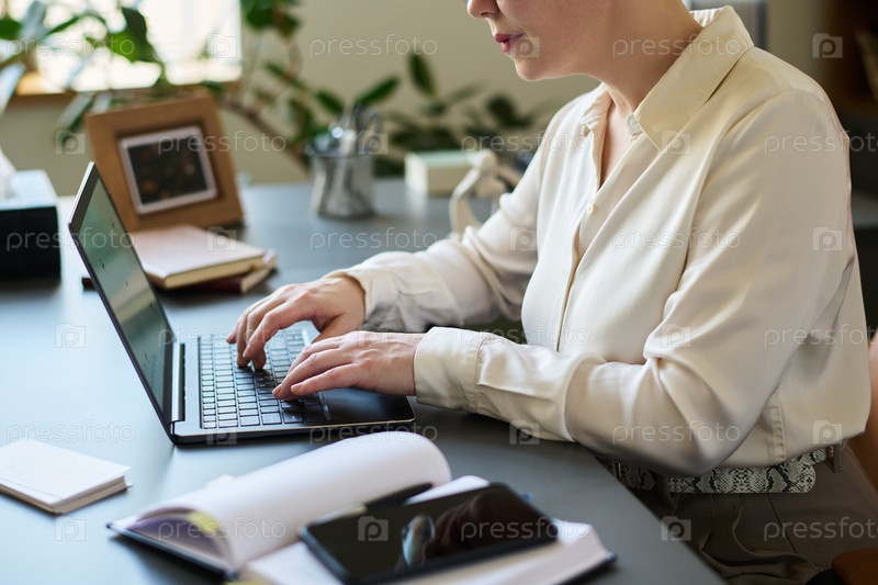 Женщина, работающая на ноутбуке в офисе психолога