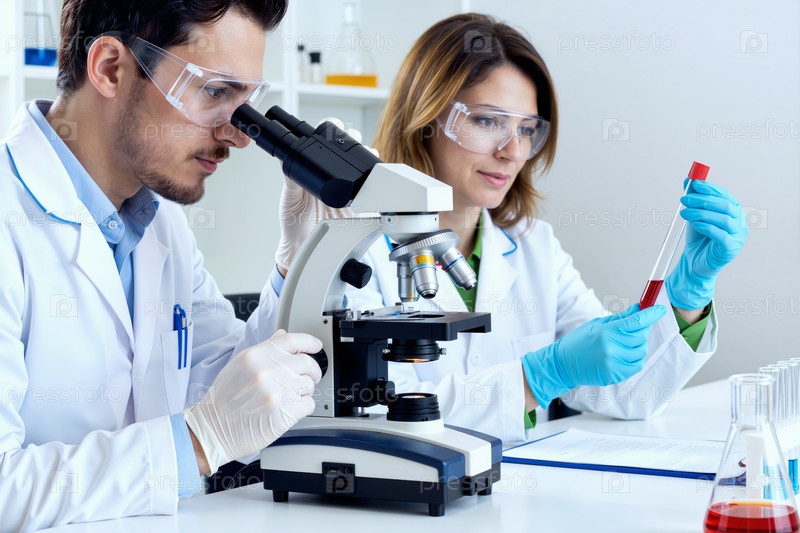 Молодой мужчина и женщина проводят научные исследования в лаборатории