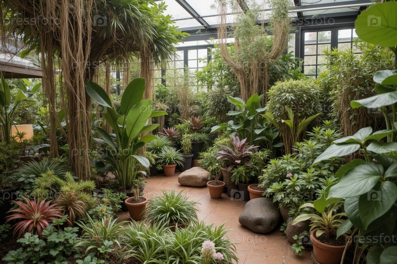 Плодородные тропические растения, процветающие в помещениях при солнечном освещении Консерватория Тепличная обстановка