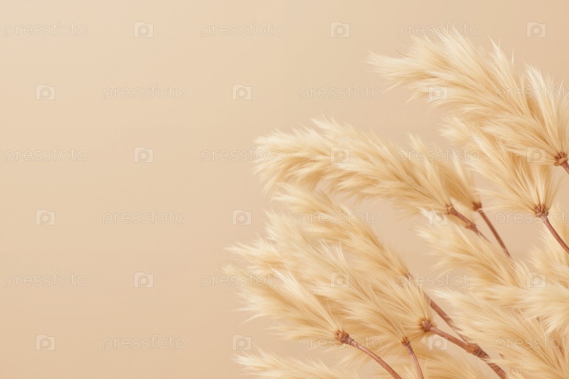 Высушенные стебли травы Пампы качаются на минимальном бежевом фоне