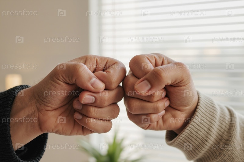 Близкое изображение мультиэтнических молодых взрослых рук, ударяющих кулаками в дружественном приветствии