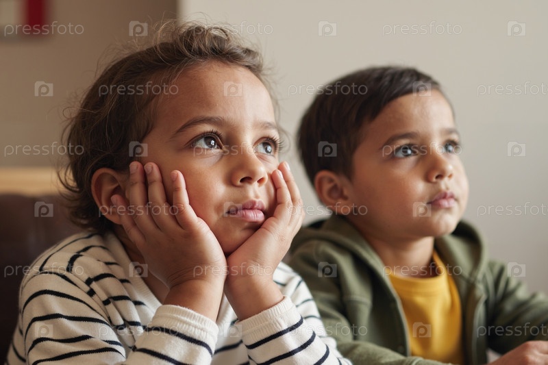 Два юных мальчика сидят в помещении и внимательно смотрят на что-то