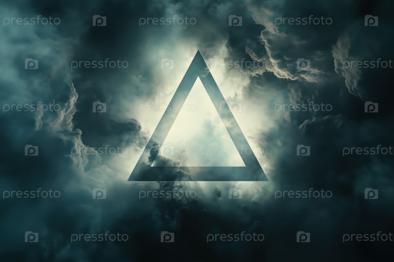 Абстрактная треугольная форма возникает через драматическое облачное небо, освещающее свет