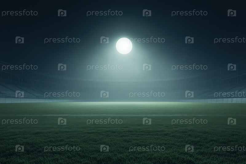 Пустой стадион освещается яркими огнями стадиона в ночное время