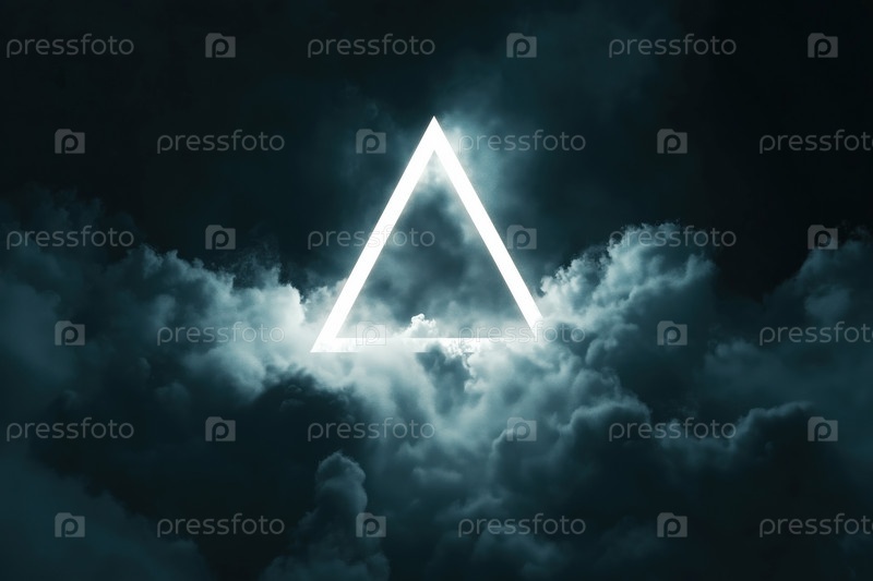 Светящийся геометрический треугольник, освещающий темное облачное небо с загадочной атмосферой
