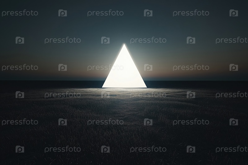 Светящийся геометрический треугольник, освещающий темный пейзаж ночью