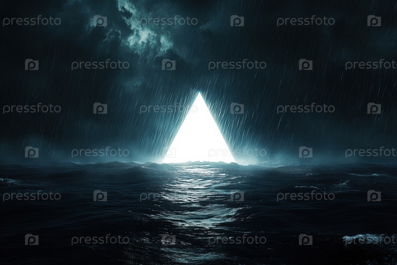 Светящийся треугольник, освещающий бурный океан под драматическим ночным небом