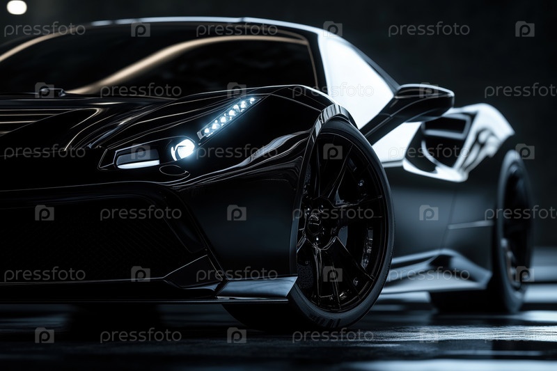Роскошный черный спортивный автомобиль с элегантным дизайном и современными фары