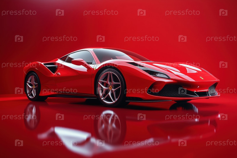 Роскошный спортивный автомобиль, стоящий на блестящей поверхности в современном студийном освещении