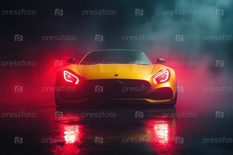 Роскошный спортивный автомобиль, освещающий темную улицу с яркими красными фарами