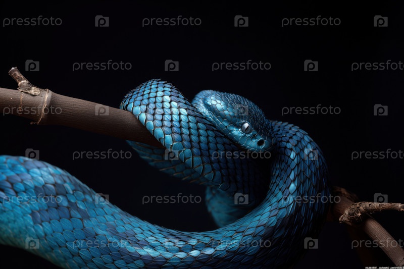 Голубая яма Змея обернулась вокруг ветви на черном фоне