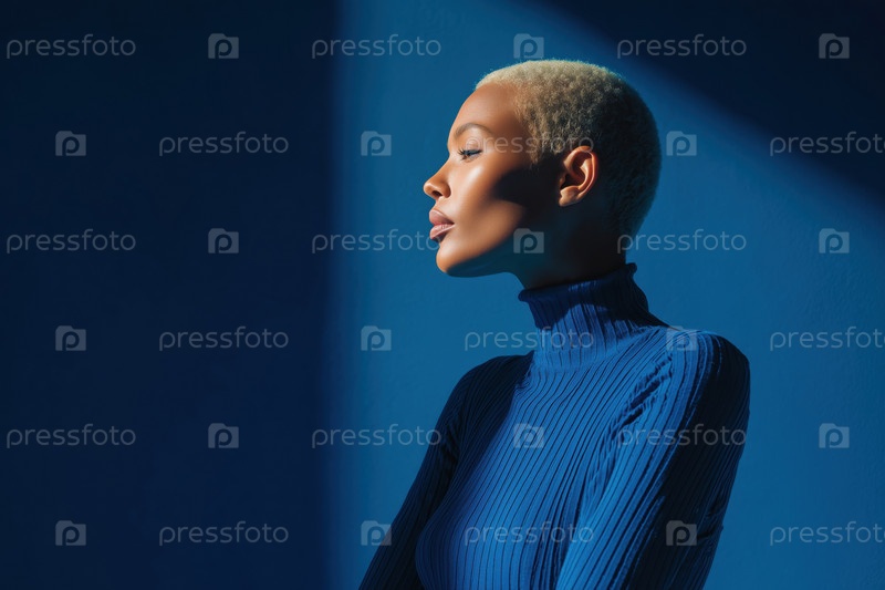 Молодая взрослая чернокожая женщина позирует в профиле под освещением драматической студии