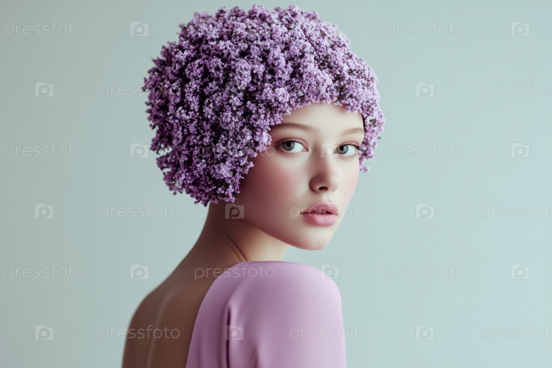 Портрет молодой женщины, одетой в цветочный головной убор и смотрящей через плечо