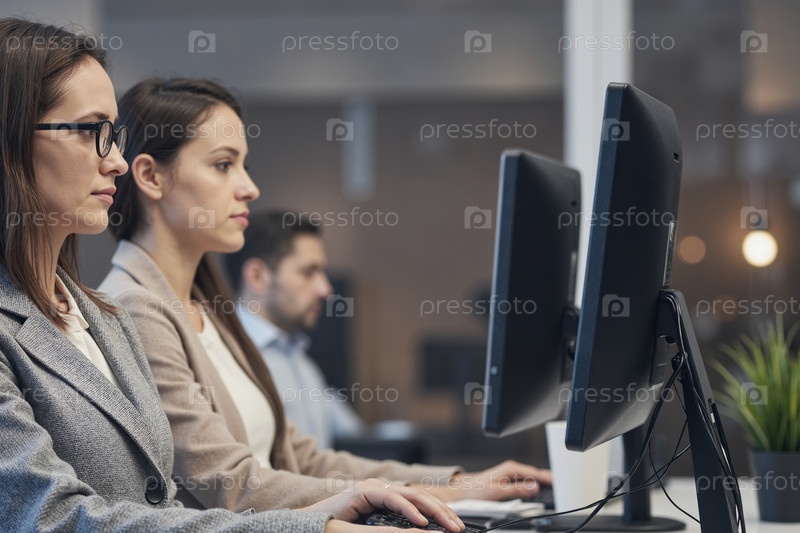Женщины, работающие на компьютерах в офисной среде