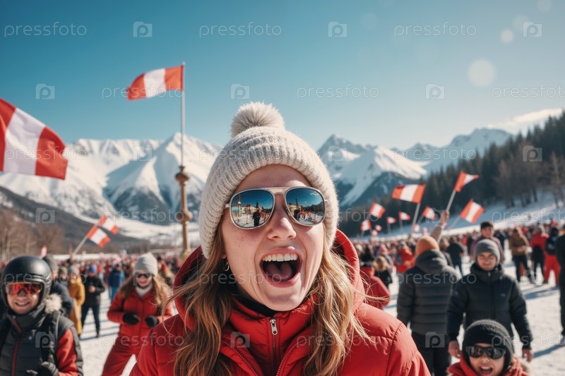 Портрет женщины, улыбающейся на улице во время зимнего фестиваля