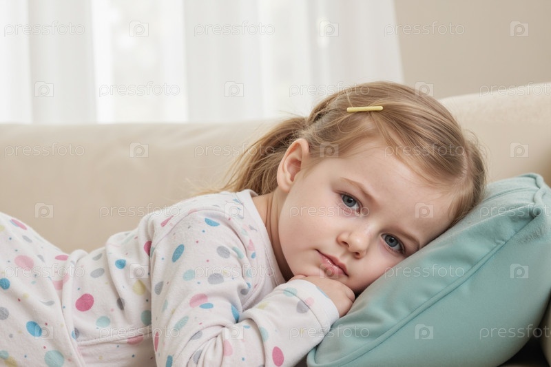 Девочка, отдыхающая головой на подушке, выглядит вдумчивым ребенком внутри