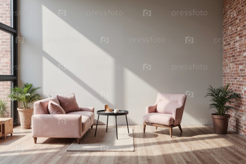 Пустой интерьер гостиной с солнечным светом, стекающим через окно