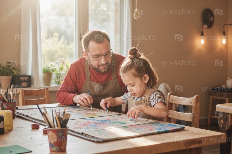 Мужчина помогает девушке рисовать вместе в помещении