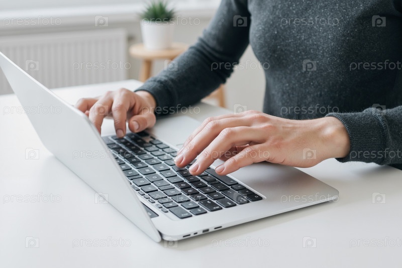 Женщина, печатающая на ноутбуке в рабочем столе внутри дома