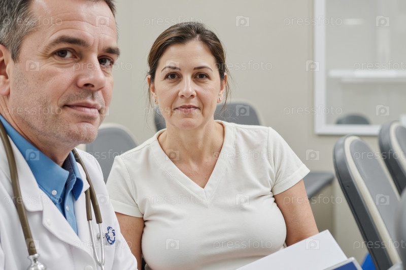 Портрет мужчины и женщины среднего возраста, сидящих вместе в клинике