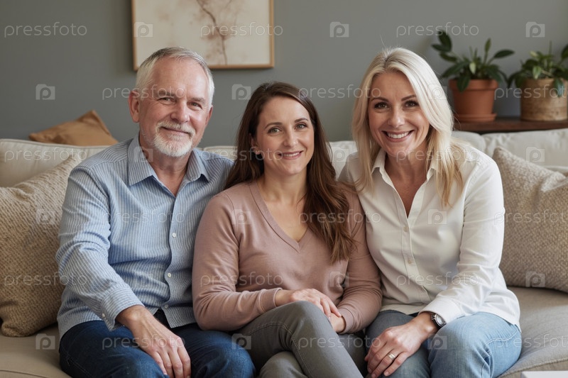 Мужчина с женщиной среднего возраста и старшей женщиной, улыбающейся
