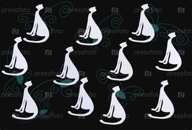 Белые кошки на черном фоне