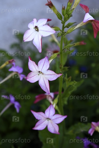 Красочные цветы декоративного табака. Nicotiana Alata. Садовый табак. Рассеянность цветов в саду