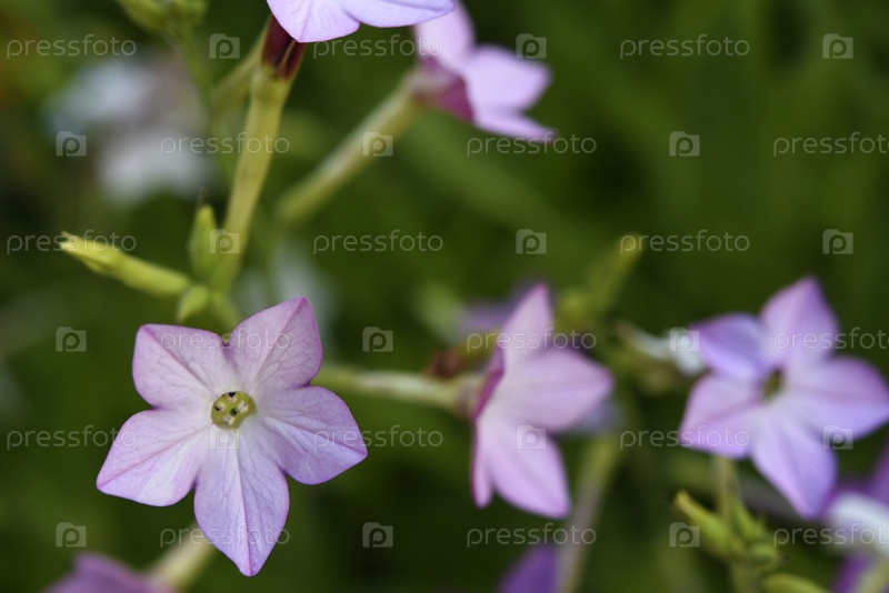 Красочные цветы декоративного табака. Nicotiana Alata. Садовый табак. Рассеянность цветов в саду