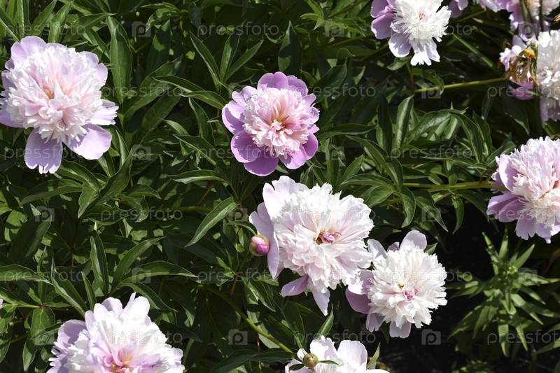 Бутоны пиона в летнем саду. цветы пиона красные и белые. цветение сада летом