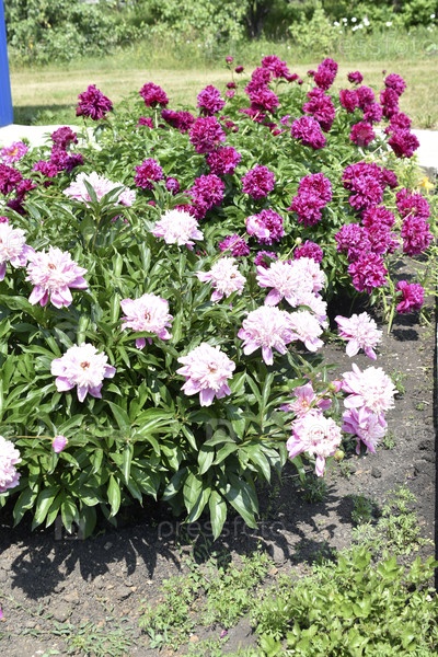 Бутоны пиона в летнем саду. цветы пиона красные и белые. цветение сада летом