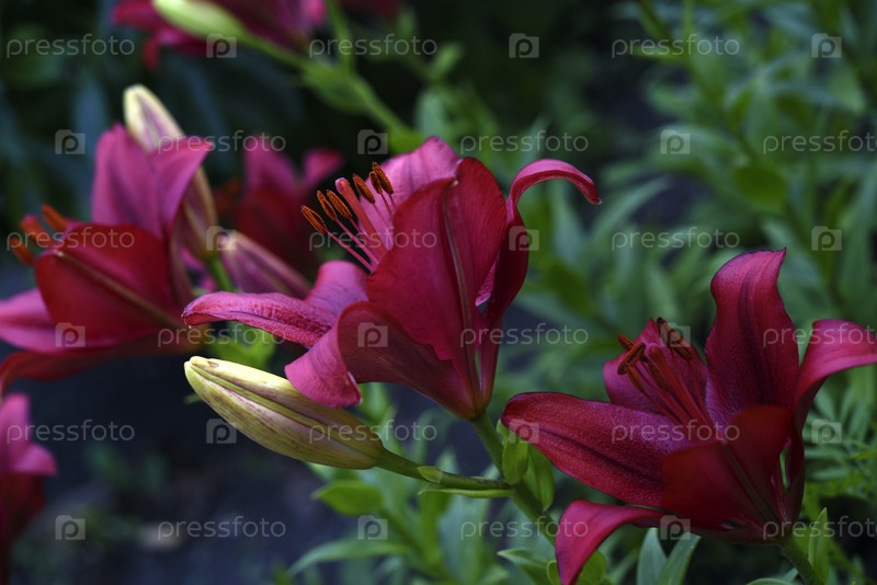 Красивые ярко-красные лилии в саду летом.Большой цветок