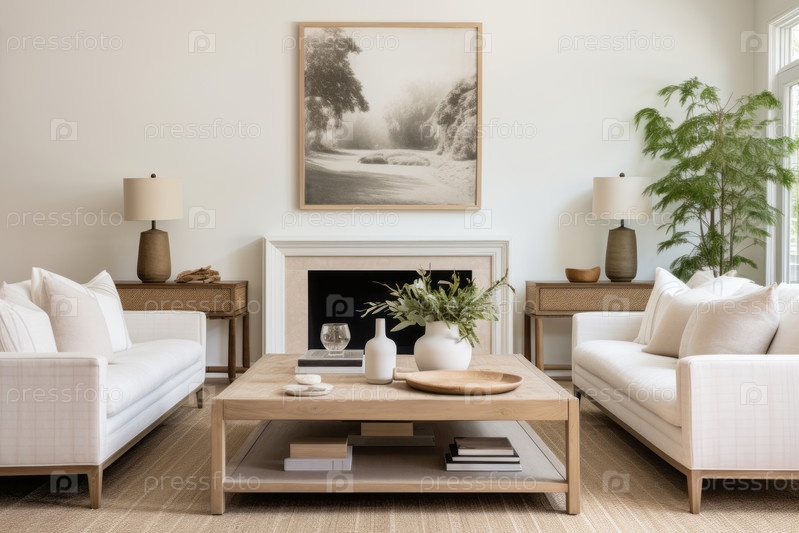 Интерьер гостиной в переходном стиле с диванами и росписью над камином идеальный баланс современных и традиционных элементов