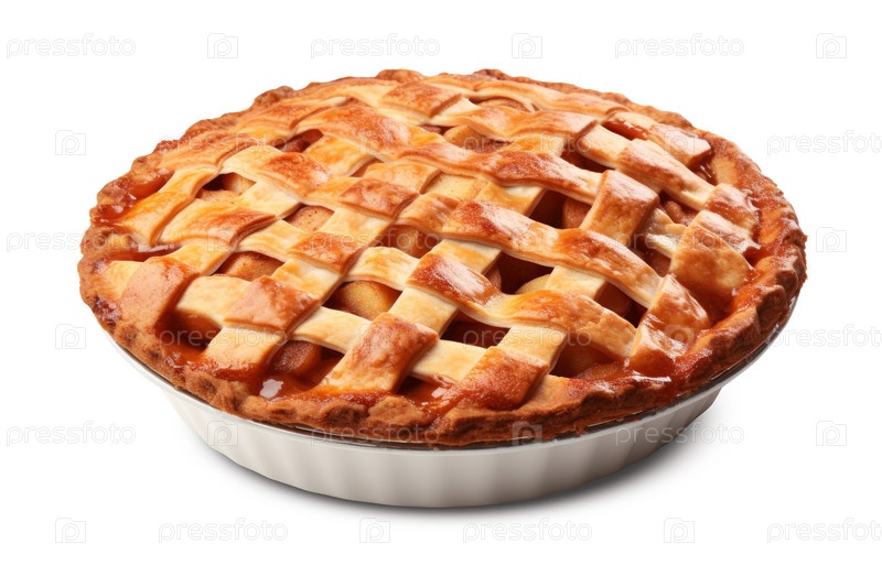 Закройте свежий вкусный яблочный пирог, изолированный на прозрачном фоне