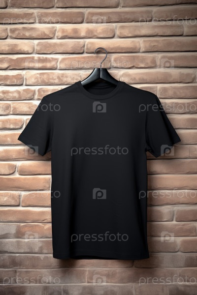 Стильные черные футболки на фоне кирпичной стены. пустое пространство для насмешек