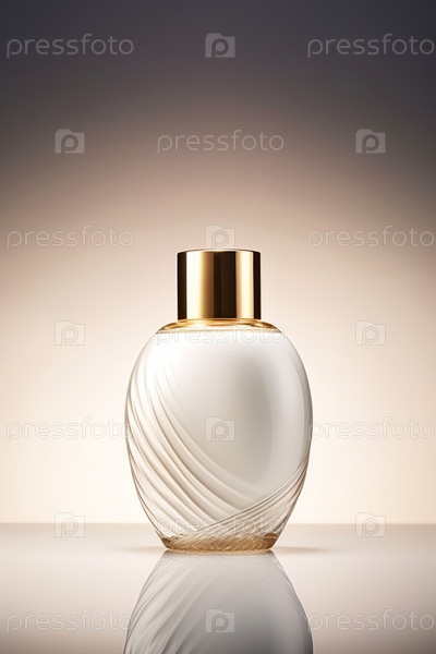 Белая бутылка косметики с позолоченной крышкой, с пустым пространством для оформления на фоне светофора студии