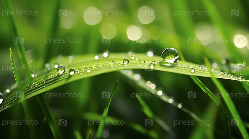 Осторожный взгляд на поцелованные росой листья трав, с каплями воды, прилипающими к поверхности