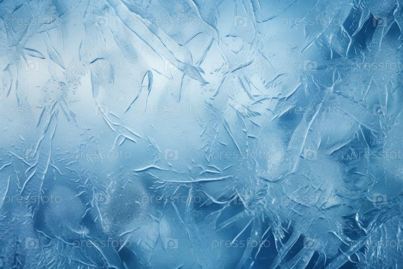 Абстрактный фон, показывающий текстуры и узоры мороза на стекле окна с ледяными голубыми тонами