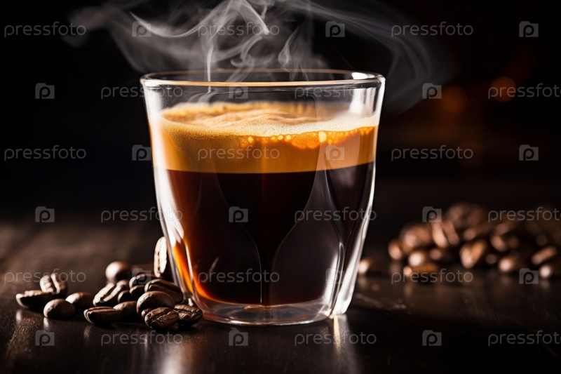 Близкий вид вареного эспрессо, с богатым сливочным слоем на темном фоне