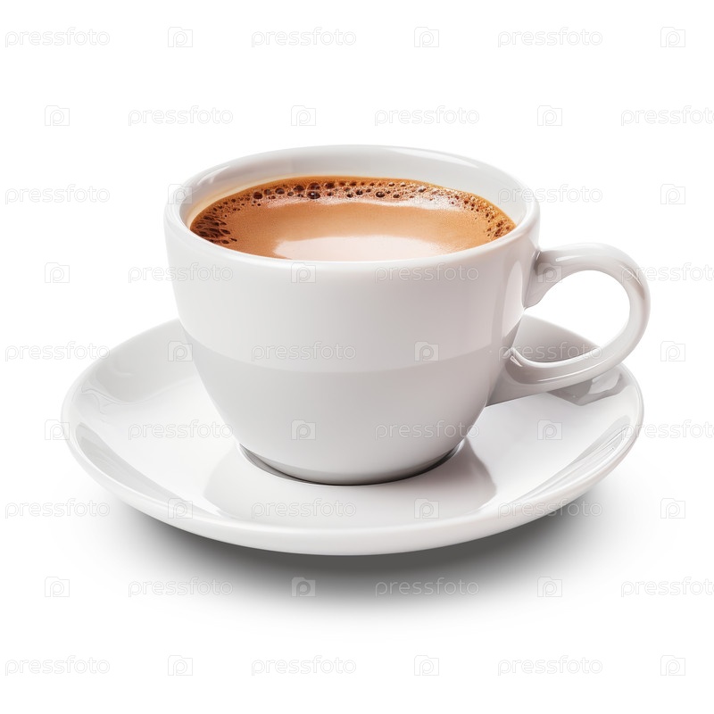 Белая чашка с тарелкой, изолированная на прозрачном фоне