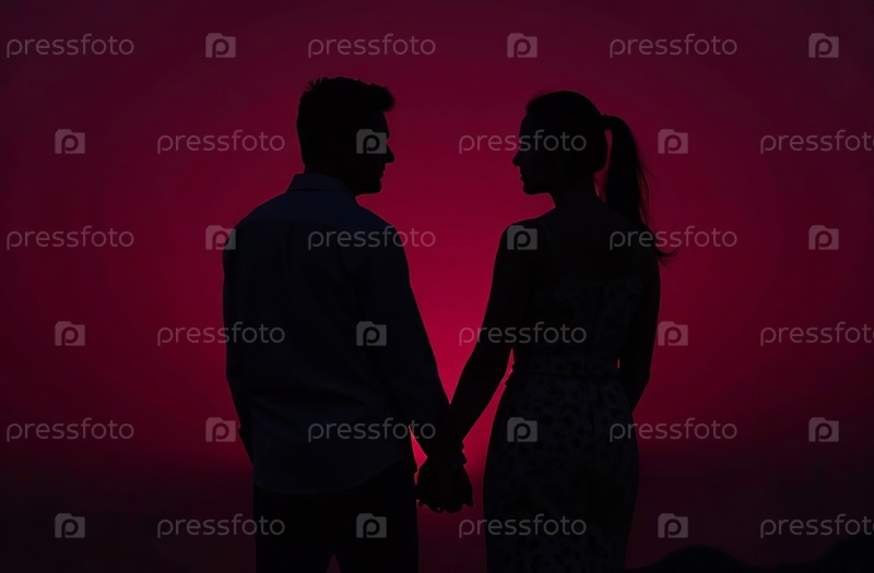 Розовый силуэт мужчины и женщины на черном фоне