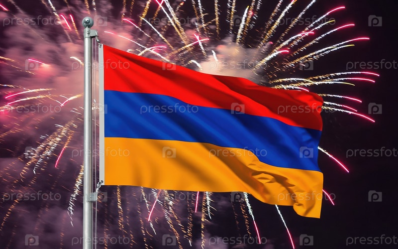 AI Генеративный Национальный флаг Независимости Государства Армения, Фейерверк на заднем плане