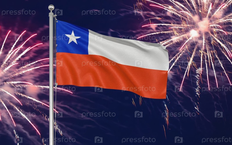Генеративный национальный флаг Чилийской независимости, фоновый фейерверк AI