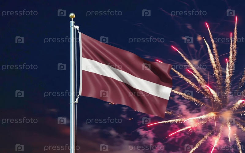 Генеративный национальный флаг Независимости Латвийского государства, фон с фейерверком