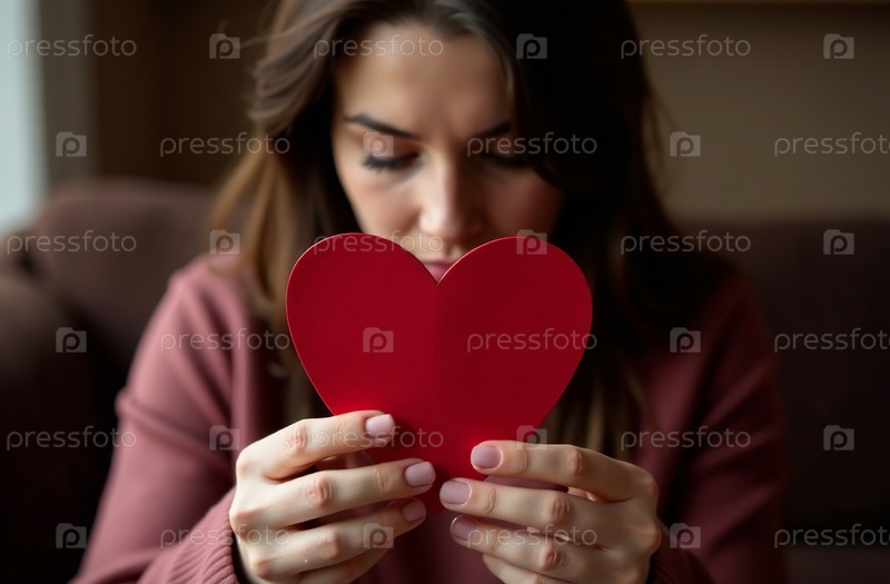 Женщина держит Валентинскую открытку в форме сердца