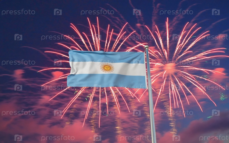 AI генеративный Национальный флаг независимости Аргентины, фон с фейерверком