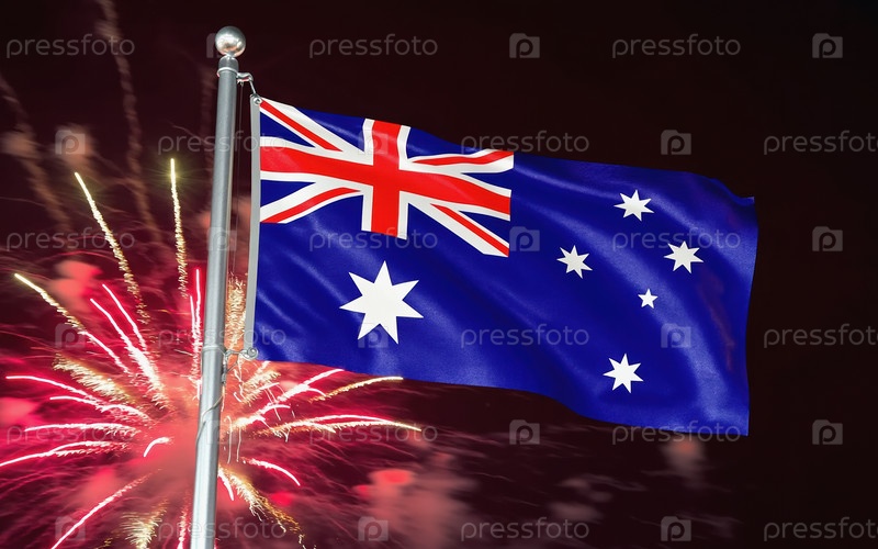 Генеративный австралийский национальный флаг независимости, фоновый фейерверк